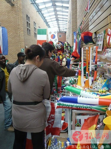 穿行在這里的商鋪之間,安全感和親切感倍增,到處是黃皮膚黑頭發(fā),還有不時(shí)會(huì)飄送過(guò)來(lái)的鄉(xiāng)音。商城中的狂歡氣氛相當(dāng)濃重,所有的走道里扎滿了世界杯32強(qiáng)的國(guó)旗。商鋪中最受歡迎的也是售賣世界杯相關(guān)商品的,每走幾步,就可以看到許多非華人的買家聚集在售賣球衣、球服、大喇叭的攤位前問(wèn)價(jià),而站在旁拍照的記者,竟因?yàn)殚L(zhǎng)著華人的面孔,被屢屢誤認(rèn)為是老板,遭問(wèn)了不下十幾次“這個(gè)值多少錢?”實(shí)際上,世界杯官方的球衣和紀(jì)念品幾乎全都是中國(guó)制造的,當(dāng)然,百家商城里出售的商品多數(shù)是沒(méi)有授權(quán)的“山寨版”,比正版貨的價(jià)格便宜數(shù)倍,因此南非各地的人,也有不少專程跑到中國(guó)城來(lái)批發(fā)便宜貨?磥(lái),世界杯又能讓南非華人大賺一筆了。(底婕)