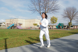 岑潔儒說,7月底接到通知時,雖還沒最后確定路程和地點(diǎn),但她已開始自我訓(xùn)練。報(bào)名表上提到,跑步路程在200米到400米之間,但現(xiàn)在溫冬奧籌委會確認(rèn)她傳火炬路程是300米,火炬長90厘米,重量3.5磅。雖然VANOC指明傳遞方式除了慢跑,也可以用走或快步走方式,一切以火炬手的體能條件做自我考慮,但岑潔儒堅(jiān)持跑完全程。她笑著說,還沒老到要用“走路”方式,不過,她最大的擔(dān)心是火炬重量。