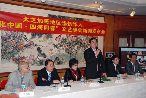 當(dāng)?shù)貢r間1月17日上午,中國駐芝加哥總領(lǐng)事館和大芝加哥地區(qū)華僑華人“文化中國•四海同春”活動籌備委員會在總領(lǐng)事館會議大廳召開新聞發(fā)布會,芝加哥各華文媒體記者和七十多個華人社團(tuán)以及留學(xué)生代表一百多人出席。芝加哥總領(lǐng)館黃屏總領(lǐng)事、謝云亮副總領(lǐng)事、儲茂明副總領(lǐng)事與大家見面。會上籌委會的總協(xié)調(diào)人和有關(guān)僑胞代表分別匯報了籌辦情況,并宣布了有關(guān)工作班子。與會者紛紛表示,將會積極做好各項準(zhǔn)備工作,隆重?zé)崃业貧g迎代表團(tuán)的到來。