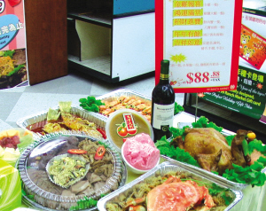 經濟不好,團年飯改在家里吃吧!大華超市公關經理曹其崢表示,他們根據市場的判斷,認為許多華裔人士會追求經濟實惠的家庭套餐,如果可以讓他們在家里就可以座享餐館的美食,將會受歡迎。因此,他們推出了力求薄利多銷,“百元有找”的新春套餐。新春套餐以“金雞報喜”、“鴻運滿堂”、“招財進寶”、“年年有余”等吉祥話命名,包括全雞、大蝦、肉蟹、黃金魚及魯菜拼盤,另外贈送紅酒、水果盤、發(fā)糕及年糕,全部套餐只要88.88元。
