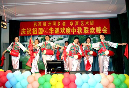 中國駐圣保羅總領(lǐng)事孫榮茂夫婦、副總領(lǐng)事顧云芬等領(lǐng)館官員出席了當(dāng)天活動。孫榮茂總領(lǐng)事在致詞中說,溫州同鄉(xiāng)會、華聲藝術(shù)團舉辦國慶聯(lián)歡會,使我想起去年中國南方雪災(zāi)、汶川大地震,溫州僑胞與全僑一起慷慨解囊,踴躍捐款,成為巴西各僑團捐款數(shù)額最高的會,充分表達了旅居巴西溫州兒女對祖國的摯愛和一片深情。孫總領(lǐng)事最后希望溫州同鄉(xiāng)和華聲藝術(shù)團越辦越好,為團結(jié)和凝聚僑胞愛國愛鄉(xiāng)熱情和力量,為活躍僑社業(yè)余文化生活做出新貢獻。