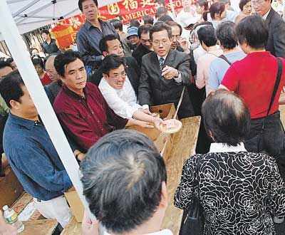 中新網(wǎng)9月23日電 據(jù)美國《世界日報》報道,今年的農(nóng)歷中秋佳節(jié)落在10月3日,美國福建同鄉(xiāng)會21日與20多個社團(tuán)和政府部門在紐約曼哈頓華埠舉行盛大的“中秋福建街坊節(jié)”,吸引超過5000民眾參加,其中大部分為閩籍鄉(xiāng)親,也有不少非華裔民眾湊熱鬧。福建同鄉(xiāng)會并在下午為鄉(xiāng)親派發(fā)福建的傳統(tǒng)月餅,共派出1500多份,眾多鄉(xiāng)親開心排隊(duì)領(lǐng)取。