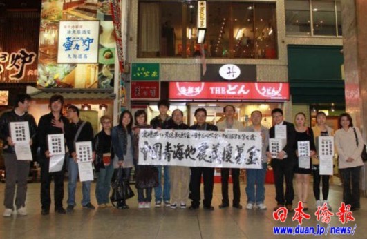 災(zāi)情就是命令!災(zāi)難無情,人間有愛!4月22日(星期四),愛媛松山一大早下起了多年未見的瓢潑大雨,但愛媛縣的同胞和日本友人仍然按照約定的時(shí)間,冒著大雨毅然走上街頭,開始了由聯(lián)合會帶頭部署倡導(dǎo)的聲勢浩大的街頭募捐活動。由三十多人組成的募捐隊(duì)伍,彼此不分中國人還是日本人,用真心與熱情共同譜寫、詮釋人間大愛——心向玉樹,情系災(zāi)區(qū)!四幅由聯(lián)合會副會長、旅日山水畫家牛子華即時(shí)揮毫寫就的《愛媛縣華僑華人聯(lián)合會 中國留學(xué)生學(xué)友會 日中友好協(xié)會:為中國青海地震義援募金》的巨大橫幅在指定地點(diǎn)拉開了,募捐隊(duì)伍懷抱著十多個(gè)由聯(lián)合會事務(wù)局準(zhǔn)備的專用募捐箱,拉開了活動的序幕。“拜托為中國青海地震災(zāi)區(qū)獻(xiàn)愛心”的募捐聲,聲聲入耳。向來對救災(zāi)特別熱情的日本國民開始駐足慷慨解囊……和兩年前祖國汶川大地震賑災(zāi)募捐情景同樣感人的一幕再次在同一地點(diǎn)重新演繹。我們禁不住熱淚盈眶——祈福災(zāi)區(qū)人民!衷心感謝熱情、善良、友好的人們!第一天共募集到58,700日元。