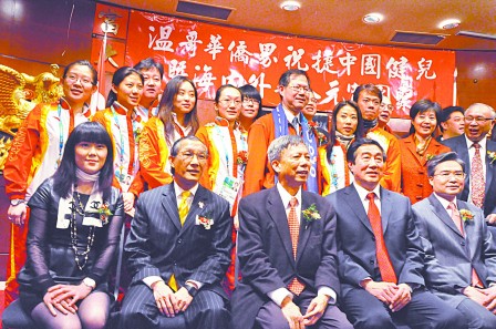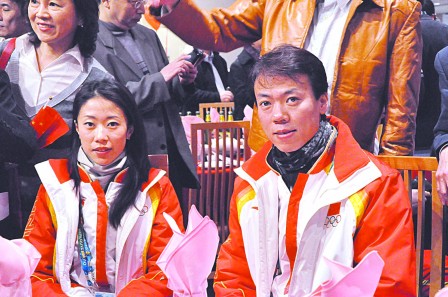 500多名僑界代表當(dāng)日共同守候功臣們的到來(lái),奪金的花樣滑冰雙人滑選手申雪和趙宏博剛到場(chǎng),便受到英雄和明星式的待遇,從進(jìn)場(chǎng)到坐下便好像“手握不完、相影不完、名簽不完。”隨后,王冰玉、周妍、岳清爽和柳蔭這冰壺4姐妹入場(chǎng),又引發(fā)新一輪高潮,場(chǎng)面極為熱鬧,閃光燈亮個(gè)不停。