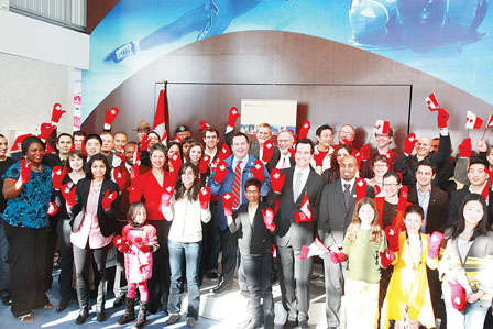 而參加宣誓儀式的“新加拿大人”們都很高興能在冬奧期間收到這樣一份驚喜,也對(duì)自己做出這項(xiàng)人生重大決定而感到欣慰。他們紛紛表示從現(xiàn)在開始要努力盡到公民的義務(wù),為加拿大的未來(lái)貢獻(xiàn)自己一份力量。據(jù)悉,加拿大每年約有17萬(wàn)來(lái)自不同國(guó)家和地區(qū)的移民宣誓入籍成為公民。