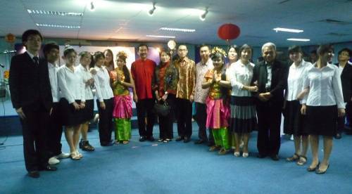 Jababeka工業(yè)區(qū)Damono董事長、哥倫比亞集團董事長劉正昌、泛印人壽保險董事長李振華,以及在校的校領(lǐng)導(dǎo)出席晚會。晚會精彩紛呈,三個國家的曼妙的歌聲和舞姿使整個晚會充滿歡愉氣氛。
