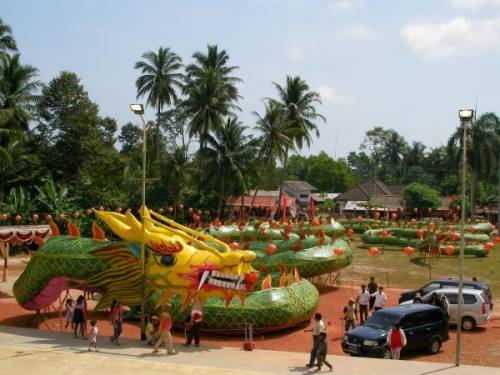 當晚約有數千民眾來到邦加島的北部城市烈港的Kampung Kenanga(Chit Fun),進入當地YPK學校的廣場,觀看熱烈的舞獅表演。該長龍展示,同時長龍身上敷貼了2萬個小年糕。