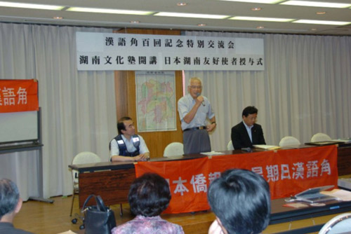 在8月2日的第100次特別交流會(huì)上,漢語(yǔ)角創(chuàng)辦者段躍中介紹了村山富市等日中知名人士的賀電。村山富市在賀電中高度評(píng)價(jià)漢語(yǔ)角堅(jiān)持100次實(shí)屬不易,并且指出日中兩國(guó)友好的基礎(chǔ)在民間,加強(qiáng)兩國(guó)國(guó)民的交流和相互理解至為重要,而漢語(yǔ)角正是實(shí)現(xiàn)這種交流的好形式。中日友好協(xié)會(huì)副會(huì)長(zhǎng)井頓泉特地從北京發(fā)來(lái)“東瀛百期漢語(yǔ)角 扶桑千秋友誼花”的賀詞,中國(guó)駐日大使館總領(lǐng)事許澤友在賀詞里稱(chēng)贊“東京池袋漢語(yǔ)角 民間交流好形式”。