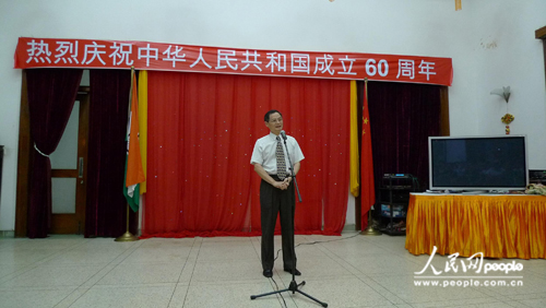 十月,南亞次大陸的烈日仍是火辣辣的,但今天,中國(guó)駐印度使館內(nèi)的氣氛也是火熱的——鮮艷的彩帶飄起來(lái)、火紅的中國(guó)結(jié)和燈籠掛起來(lái),人們的臉上也帶著喜悅的微笑,到處充滿了節(jié)日的氣氛。