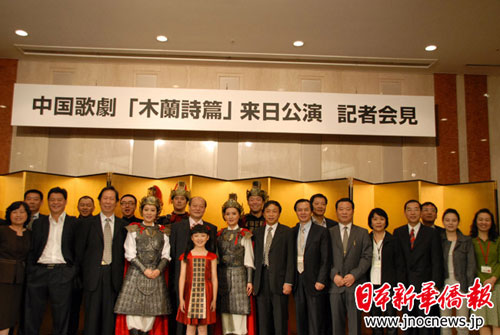 顏安原為中國(guó)人民解放軍總政治部歌舞團(tuán)演員,走出國(guó)門以后一直從事中日文化交流活動(dòng)。11月10日上午,他與剛剛抵達(dá)日本東京的本次出訪團(tuán)副團(tuán)長(zhǎng)李福祥等共同主辦“中國(guó)歌劇《木蘭詩(shī)篇》新聞發(fā)布會(huì)”。