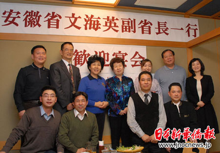 文海英副省長最后熱情洋溢地說:“在座的各位都是在日華人的精英,你們在異國他鄉(xiāng)奮力拼搏,取得了可觀的成績,也擁有很多回國發(fā)展的資源,希望你們?yōu)橹腥諆蓢慕?jīng)濟(jì)、文化的發(fā)展和交流進(jìn)一步作出努力。同時(shí),歡迎安徽籍的在日華人同胞回到安徽發(fā)展,為家鄉(xiāng)的繁榮作出更大的貢獻(xiàn)。”