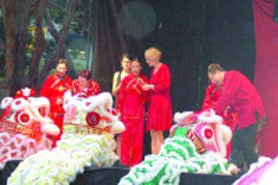 紐省省長簡納莉、悉尼市長摩雅、中國駐悉尼總領(lǐng)事胡山、農(nóng)歷新年慶典活動顧問小組主席郭耀文市議員、重慶市代表團領(lǐng)導(dǎo)為舞獅主持點睛儀式。