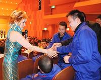 中新網(wǎng)4月19日電 據(jù)日本新華僑報網(wǎng)報道,4月16日,在日本長野縣信州難佐久郡川上村從事高原蔬菜栽培技術(shù)研修的大約450名中國研修生享受到了一場高水平演唱會。為了豐富研修生們的日常生活,川上村的村民們在村文化中心舉辦了一場音樂會,邀請到現(xiàn)在正活躍早中日兩國演藝界的女高音歌手松井菜穗子現(xiàn)場表演。松井菜穗子現(xiàn)場演唱了十首歌曲,其中還包括大家耳熟能詳?shù)闹形母枨?table border=0 cellspacing=0 cellpadding=0 align=left>
