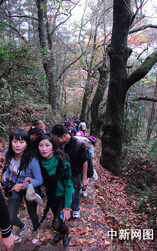 中新網(wǎng)溫州12月15日電 (記者 李飛云)入秋以來,中國著名僑鄉(xiāng)——浙江文成四周山嶺上的紅楓古道成為旅游的熱門場所,被北京大學(xué)教授謝凝高稱為“紅楓古道,江南少有。存之不易,堪稱佳景!泵康街苣┘偃眨臀凉M山的游客訪古尋幽。