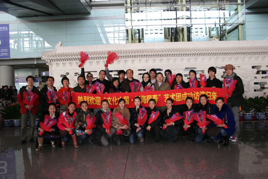 中新社北京3月9日電 (南若然)9日中午,“文化中國·四海同春”赴歐洲藝術(shù)團(tuán)結(jié)束了在法國、英國、比利時(shí)和意大利的慰僑演出后,返回北京。