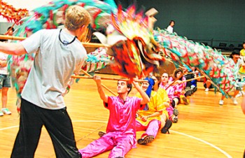 鑼鼓聲中,湖南涉外經(jīng)濟(jì)學(xué)院舞龍舞獅隊(duì)千變?nèi)f化的動(dòng)作,讓美國學(xué)生感到震撼,也不忘嘗試一番中國龍的韻味。而南棍和太極等中國功夫更讓美國學(xué)生興致高漲。期間,美國學(xué)生擺弄起中國的筆墨紙硯,還真是有模有樣。
