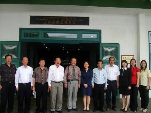蘇北華聯(lián)副理事長廖章然率隊陪同客人參觀了亞洲國際友好學(xué)院,介紹了該校的創(chuàng)辦過程及發(fā)展現(xiàn)狀,并先后參觀了學(xué)院圖書館、視聽室、遠端教育室、畫展室、星洲大禮堂,就學(xué)院的長遠發(fā)展及設(shè)施建設(shè)交換了意見。之后,蘇振武又來到中國老師的宿舍樓,與中國老師進行親切交談。