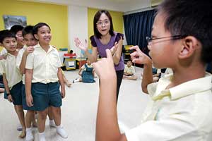 中新網(wǎng)9月21日電 據(jù)新加坡《聯(lián)合早報》報道,為了更好的在校內(nèi)普及華文教育,增強學生對華文的學習興趣,新加坡布蘭雅坡小學的華文老師陳翡翠和同事從2007年起,在校內(nèi)針對二年級華文校本課程內(nèi)容進行創(chuàng)新實踐,把戲劇元素融入教學中。