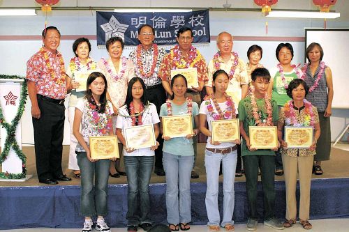 中新網(wǎng)9月21日電 據(jù)美國(guó)《星島日?qǐng)?bào)》報(bào)道,美國(guó)夏威夷明倫學(xué)校近日召開(kāi)頒獎(jiǎng)大會(huì),褒揚(yáng)在第10屆世界華人學(xué)生作文大賽中獲獎(jiǎng)的師生。5位學(xué)生和4位教師高興地從學(xué)校董事長(zhǎng)方惠思手中接過(guò)由大賽組委會(huì)從中國(guó)寄來(lái)的得獎(jiǎng)證書(shū),全校師生也分享了他們的光榮。