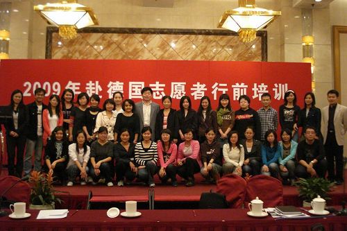 國家漢辦12日為該批志愿者組織了行前培訓并為他們送行。志愿者中心主任薛華領勉勵志愿者們繼承漢語教師志愿者兢兢業(yè)業(yè)、克己奉獻的優(yōu)良作風,發(fā)揚志愿精神,高標準要求自己,做好志愿服務工作。同時也希望志愿者們牢記漢語教師志愿者的“光榮感、責任感、使命感”,進一步提高自身素質,關心國家大事,在新中國60華誕之際,抓住機遇,展示祖國的偉大成就,為中德友好交流做出貢獻。志愿者們紛紛表示,祖國的崛起與富強堅定了他們當好文化傳播民間使者的信心和決心,激勵著他們投身到漢語國際推廣事業(yè)的最前沿隊伍中去,把工作做得更好、更精彩。