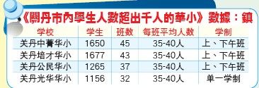 “目前關(guān)丹市區(qū)內(nèi)只有培才華小、中菁華小、公民華小及光華華小的學(xué)生人數(shù)超過1000人。不過,由于學(xué);驹O(shè)施足以應(yīng)付需求,因此未出現(xiàn)所謂學(xué)生人數(shù)爆滿的情況。
