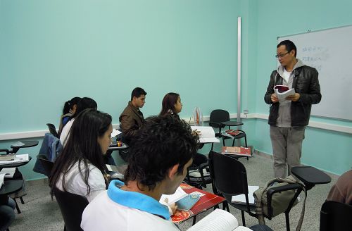 中新網(wǎng)2月1日電 據(jù)國家漢辦網(wǎng)站消息,在駐古巴使館的高度重視和有力支持下,古巴哈瓦那大學(xué)孔子學(xué)院自開學(xué)以來,獲得當?shù)孛癖姷臒崃曳磻?yīng)。希望報名參加漢語班學(xué)習(xí)的人數(shù)越來越多。鑒于報名者中有很多來自在校大學(xué)生,也有一些是曾在中國學(xué)習(xí)過漢語的留學(xué)歸國人員,孔子學(xué)院開設(shè)了3個本科漢語班,從眾多報名者中錄取了52人,開展?jié)h語本科教學(xué)?鬃訉W(xué)院從院長到教師工作熱情很高,講課生動有趣,教學(xué)效果良好。