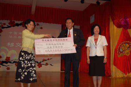 佟曉玲祝賀文萊中華中學(xué)于去年被中國海外交流協(xié)會授予“海外華文教育示范學(xué)!狈Q號,強(qiáng)調(diào)此次中國海外交流協(xié)會決定向文萊中華中學(xué)捐贈10萬元人民幣的辦學(xué)經(jīng)費(fèi),既是中國有關(guān)方面對文中所取得成就的承認(rèn)與鼓勵,也體現(xiàn)了中國政府和人民對海外華文教育事業(yè)的高度重視與大力支持。她表示,隨著中國的進(jìn)一步發(fā)展和繁榮富強(qiáng),中國將向海外華文教育機(jī)構(gòu)提供更多資助。中國大使館也將一如既往地為文萊華文教育事業(yè)的發(fā)展貢獻(xiàn)力量。