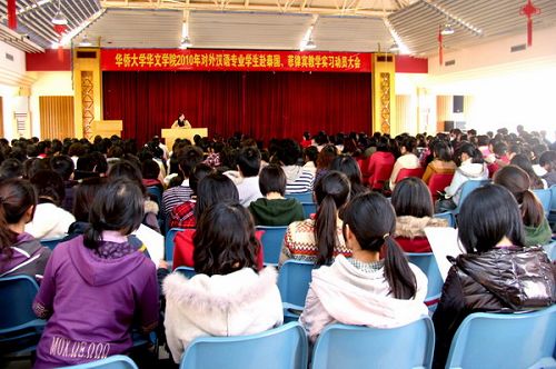 中新網(wǎng)3月12日電 據(jù)華僑大學(xué)網(wǎng)站消息,3月11日下午,華僑大學(xué)華文學(xué)院召開2010年對外漢語專業(yè)學(xué)生赴泰國、菲律賓教學(xué)實習(xí)動員大會。院長孫汝建、黨總支書記兼副院長趙明光與學(xué)院辦公室、教學(xué)辦、培訓(xùn)部、招生辦、學(xué)生辦等部門領(lǐng)導(dǎo),以及教學(xué)實習(xí)的帶隊老師和07、08、09級對外漢語專業(yè)的353名同學(xué)參加大會。