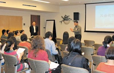 中新網(wǎng)4月16日電 據(jù)美國(guó)《世界日?qǐng)?bào)》報(bào)道,美國(guó)韋伯斯特大學(xué)孔子學(xué)院日前在該校愛莫森圖書館會(huì)議室舉辦第二屆漢語(yǔ)教師研修班。近50位圣路易地區(qū)漢語(yǔ)教師及漢語(yǔ)教學(xué)熱心人士參加培訓(xùn)會(huì)議。