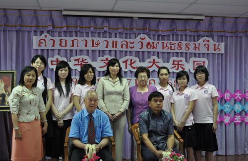 泰國(guó)華文教師公會(huì)主席、華僑大學(xué)校董羅宗正,泰國(guó)邦高皇家圣諭中學(xué)校長(zhǎng)BOONCHU WING PAT,華僑大學(xué)華文學(xué)院副院長(zhǎng)李曉潔以及大樂(lè)園的老師、參加夏令營(yíng)活動(dòng)的學(xué)生和部分家長(zhǎng)出席了開(kāi)營(yíng)式。