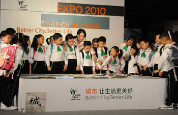 中新網(wǎng)5月17日電 據(jù)上海市僑辦消息,日前,上海市盧灣區(qū)華文教育基地——七色花小學(xué)的操場(chǎng)熱鬧非凡,來(lái)自美國(guó)、英國(guó)、澳大利亞、巴西等不同國(guó)家和地區(qū)的同學(xué)和家長(zhǎng)在十個(gè)國(guó)家場(chǎng)館平面模型前擺開了陣勢(shì),模擬世博參觀情景。