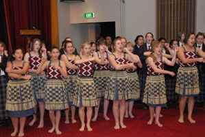 張利民與該校校長Prue Taylor一同步入禮堂,學生們用傳統(tǒng)的毛利歌舞歡迎大使一行的到來。校長在講話中表示,對于能夠在基督城女子高中這所擁有125年歷史的學校開展“漢語角”活動,她倍感榮幸,同時也感謝張利民及新西蘭中使館教育處官員、新西蘭漢語顧問以及社會各界為促進漢語學習和交流的朋友們長期做出的貢獻和支持。