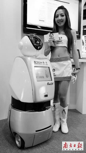 昨日,在臺北國際電腦展上,工作人員展示臺灣一家廠商生產(chǎn)的居家看護(hù)機器人(見圖)。這款機器人可通過互聯(lián)網(wǎng),將在家獨居老人的生活狀況傳遞給家屬。