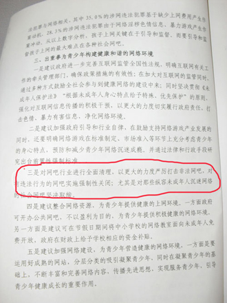 在嚴(yán)琦交給記者的提案文本中記者看到,提案中關(guān)于“出重拳為青少年構(gòu)建健康和諧的網(wǎng)絡(luò)環(huán)境”中第三條建議寫著:對(duì)網(wǎng)吧行業(yè)進(jìn)行全面清理,以更大的力度嚴(yán)厲打擊非法網(wǎng)吧,對(duì)有違法行為的網(wǎng)吧實(shí)施強(qiáng)制性關(guān)閉;尤其是對(duì)那些縱容未成年人沉迷網(wǎng)絡(luò)的社會(huì)網(wǎng)吧堅(jiān)決取締。