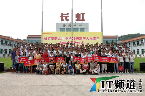 長虹公司2008年開始實(shí)施對北川中學(xué)高考錄取生的獎學(xué)金計(jì)劃,目前共計(jì)發(fā)放獎勵金額14萬元,惠及119人,極大激勵了北川中學(xué)高考學(xué)子及在校師生的學(xué)習(xí)熱情。