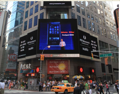 由于成為美國(guó)近一周來(lái)媒體關(guān)注的焦點(diǎn),作為紐約地標(biāo)建筑的時(shí)代廣場(chǎng)新聞電子大屏對(duì)《Yulong Launches Coolpad N900 in China to Combat iPhone》的新聞進(jìn)行了長(zhǎng)時(shí)間的播報(bào),中國(guó)手機(jī)新力量可能對(duì)iphone產(chǎn)生的沖擊引起了美國(guó)社會(huì)的廣泛關(guān)注,這也是國(guó)產(chǎn)手機(jī)首次亮相紐約時(shí)代廣場(chǎng)。