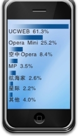 報(bào)告顯示,目前從活躍用戶的市場(chǎng)占比情況來(lái)看,UCWEB用戶優(yōu)勢(shì)仍較為明顯,三季度約占活躍用戶總數(shù)的61.33%,Opera Mini活躍用戶數(shù)位居第二,約占活躍用戶總數(shù)的25.22%,此外,空中Opera約占總活躍用戶數(shù)的8.38%。但3G門戶、騰訊等廠商通過(guò)增加產(chǎn)品的適配性,紛紛發(fā)力手機(jī)瀏覽器市場(chǎng),利用原已積累的龐大的用戶群搶占了部分用戶界面。