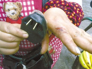 “這就是電池爆炸后留下的傷口。今天是第三天了,傷口還是痛!弊蛱煜挛,記者見到了最近為手機電池傷透了腦筋的鄧女士,她揚起左手食指給記者看時,還有些心有余悸。因為此前的爆炸,她左手食指第三個關節(jié)處已皮開肉綻,一條近2厘米的傷口很顯眼。