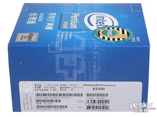 英特爾奔騰雙核E5300原盒處理器采用45nm工藝制造,采用LGA775接口,主頻為2.6GHz,外頻為200MHz,倍頻為13X,一級(jí)數(shù)據(jù)緩存為32KBytes,共享2MB的二級(jí)緩存,800MHz前端總線。