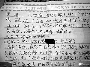 許多網(wǎng)友唏噓感嘆“現(xiàn)在的小孩子真是早熟得可以”,不少網(wǎng)友更對這些情書的用詞和書寫水平表現(xiàn)出了高度的“佩服”。事實上,近期有關(guān)學生的戀愛問題被頻頻拿到網(wǎng)上曝光。早在年前,有一小學五年級男生給女生寫了100個我愛你的情書風波;稍后,又爆出成都某小學7歲的男生給同班女生遞上“我愛你×××,你愛我嗎”紙條的新聞。如今,網(wǎng)上又再現(xiàn)“傳情”紙條,這些被定義為“情書”的文字,成為了學生早戀的證據(jù),并讓越來越多的人開始擔憂早戀呈低齡化的趨勢。