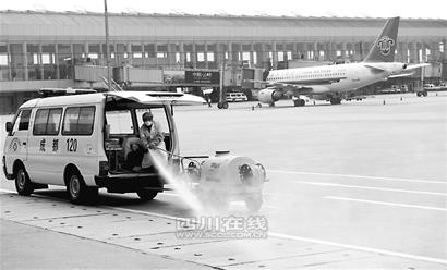“4月30日起,四川機場集團就已按照民航總局的通知啟動預防預案,并發(fā)布工作流程?梢哉f雙流機場的防疫布控工作已經(jīng)在有序地進行中!彪p流機場辦公室主任余吟波介紹,整個機場集團成立了6個特別小組,包括排查組、現(xiàn)場體溫檢測組、物資保障組、消毒組、信息組以及轉(zhuǎn)運組。