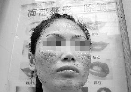 6月10日晚,喜歡美容的李信瓊在金花橋金興南路97號一家美容店內(nèi),做了一次所謂的“光子祛紅血絲”。但半個小時的功夫,她那張?jiān)詾楹赖陌變裘嫒,竟布滿了一條一條令人觸目驚心的“燒痕”。昨日,在屈辱和絕望的雙重打擊下,李信瓊再次來到店內(nèi)討要說法……