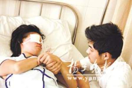 在醫(yī)院眼科搶救病房里,記者昨天下午見到雙眼蒙著紗布、躺在病床上的小雨,她雙手拉住坐在一旁的丈夫不愿松開。據(jù)小雨的丈夫梁偉介紹,他與妻子是在常州打工時(shí)認(rèn)識的,兩人于2007年年底結(jié)婚,在結(jié)婚前,妻子就知道他有一個(gè)患精神分裂癥的弟弟。