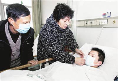 昨日上午9時(shí)許,在同濟(jì)醫(yī)院外科2號(hào)樓,窗外漫天飛雪,陳玉蓉母子所在的病房一片暖意:母親身穿亮綠色中式棉襖,氣色恢復(fù)如常,不時(shí)慈愛(ài)地看著一旁的兒子。