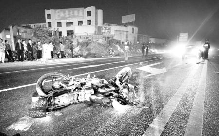 記者趕到現(xiàn)場(chǎng)時(shí),警察正在勘查現(xiàn)場(chǎng)。一輛黑色的小轎車停在距紅綠燈路口停止線約30米的地方,車子的零部件散了一地,一輛摩托車倒在小車前方約20米遠(yuǎn)的位置,距小車5米左右的地方還仰面躺著一名十多歲的少年,腦后一大攤血,已經(jīng)身亡。目擊者劉先生說,摩托車駕車者是個(gè) 30多歲的男子,車上載著3名十多歲的少年。多位村民表示,這段路沒有路燈,對(duì)面有車開來時(shí),車燈晃眼,很危險(xiǎn)。目前3位傷者的傷勢(shì)嚴(yán)重,正在搶救中,事故原因正在進(jìn)一步調(diào)查中。 (本網(wǎng)記者 曾力/文 林丹/圖)