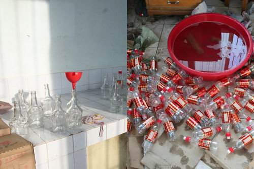 經(jīng)審訊,自2008年7月以來,3名犯罪嫌疑人以1萬余元的價格(每只空“五糧液”酒瓶4元、商標(biāo)8000余元)從浙江溫州一徐姓男子手中購進(jìn)了300套假冒的“五糧液”包裝及商標(biāo),利用低檔“尖莊”白酒(每瓶約10余元)灌制假“五糧液”銷售到薩爾圖、龍鳳等一些煙酒店、超市,非法牟利10萬余元(已揮霍)。