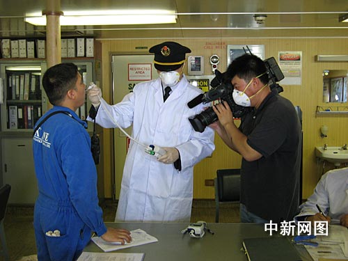 外高橋邊檢站民警告訴記者,巴拿馬籍“曼哈頓橋”輪于昨天(5月5日)上午8時(shí)靠泊外高橋碼頭。該輪由于途徑甲型H1N1流感疫情較重的美國,且船上有一名菲律賓籍船員體溫異常,邊檢和衛(wèi)檢啟動(dòng)聯(lián)動(dòng)應(yīng)急預(yù)案,在第一時(shí)間對(duì)其進(jìn)行了專門檢查和檢疫。