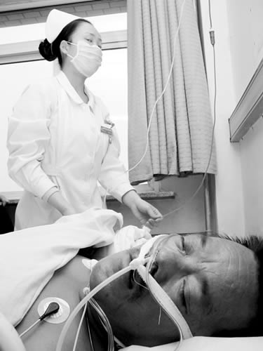 主治醫(yī)于杰、護(hù)士長王斌寸步不離地守護(hù)在患者病床前,隨時(shí)準(zhǔn)備應(yīng)對突發(fā)情況。