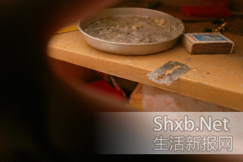 采訪中記者發(fā)現(xiàn),楊某的左手有3道疤痕,“你手上的刀疤是怎么回事?”記者問!笆俏易约嚎车!睏钅撤Q,小孩去世后,他情緒難以控制,為了發(fā)泄,便用刀砍了自己的手,還用刀片在自己大腿上刻下“永愛張×”,隨后又在女孩手上刻下“永愛飛龍”,以表達(dá)他們對感情的忠貞不渝!澳氵@樣做,不痛嗎?”“沒管那么多了!睏钅炒稹T跅钅车拇笸壬,記者看到不少被刀片劃過的痕跡和“永愛張×”的字樣。