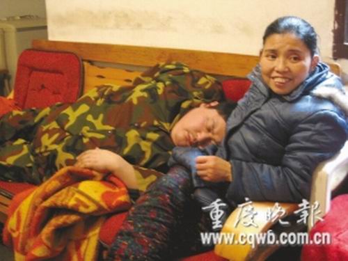 “亮亮,莫睡了,有人來看你了。”前日下午,當記者來到劉曉亮位于楊家坪街道天寶路的家時,他正在客廳木制沙發(fā)上酣睡。身穿迷彩服的他,若不是露出的一雙光腳板,記者還以為是堆在沙發(fā)上的一堆厚棉絮。